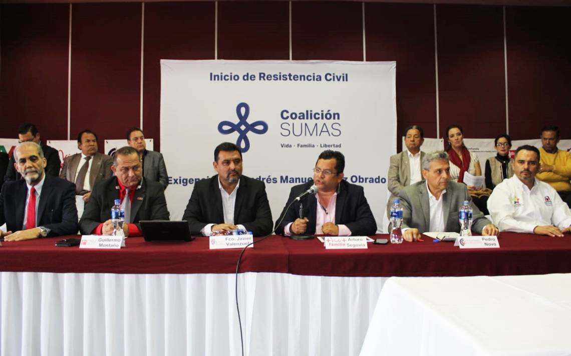 Ciudad de México.- Con la representación de más de 700 asociaciones del país, el martes 6 de noviembre del 2018 se anunció en conferencia de prensa el nacimiento de “La Coalición” SUMAS (Suma de Actores Sociales), que convocó a una resistencia civil permanente a nivel nacional ante los ataques sistemáticos a la vida, la familia y las libertades por parte del gobierno federal entrante y sus legisladores.